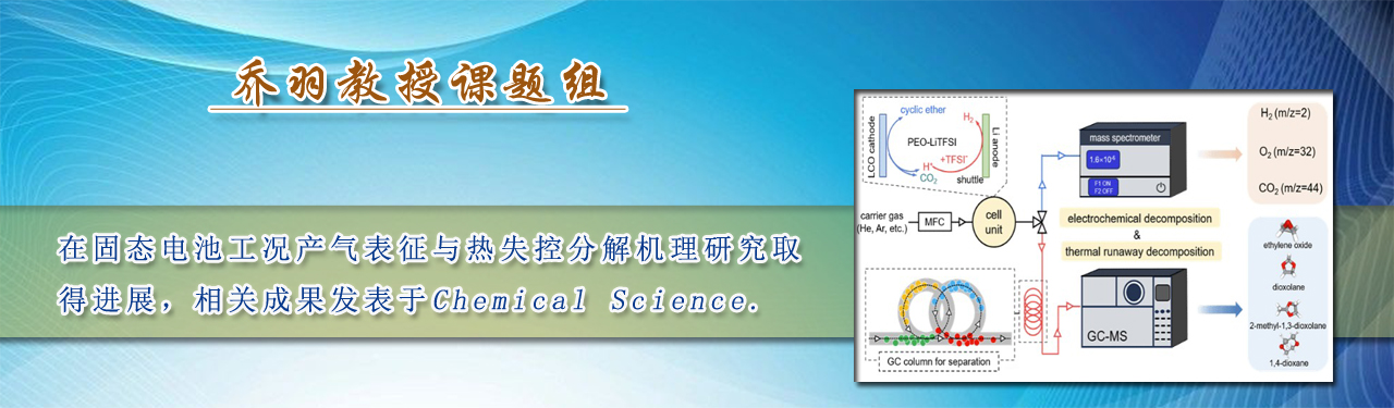 乔羽教授课题组围绕固态电池关键材料PEO(聚环氧乙烷)基聚合物电解质的失稳机理开展系统研究,构建了“在线质谱(MS)/在线气相色谱–质谱(GC-MS)”一体化原位气体分析平台,全面识别并追踪PEO在电化学工作与...