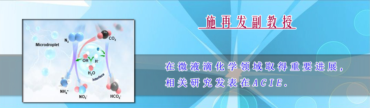 近日,我院施再发副教授与香港浸会大学蔡宗苇教授合作在微液滴化学领域取得重要进展。相关研究成果以“Synergistically Activating N2 and CO2 at Water Microdroplet Interfaces”为题,发表在Angewandte Chemie...