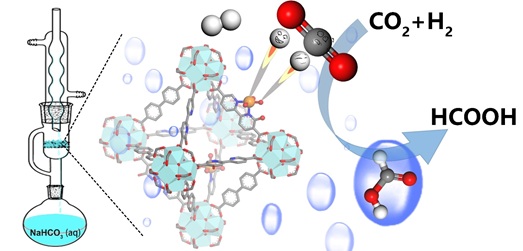 Molecular iridium catalysts immobilized in metal–organic frameworks (MOFs) were positioned in the condensing chamber of a Soxhlet extractor for efficient CO2 hydrogenation. Droplets of hot water seeped through the MOF catalyst to create dynamic gas/liquid interfaces which maximize the contact of CO2, H2, H2O, and the catalyst to achieve a high turnover frequency of 410 h–1under atmospheric pressure and at 85 °C. H/D kinetic isotope effect measurements and density functional theory calculations revealed concerted proton–hydride transfer in the rate-determining step of CO2 hydrogenation, which was difficult to unravel in homogeneous reactions due to base-catalyzed H/D exchange.