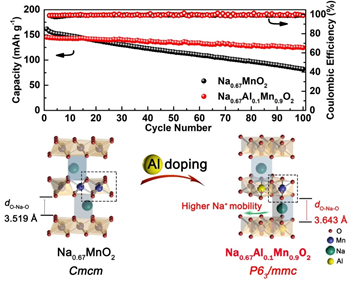 Title:P2-Na0.67AlxMn1-xO2: cost-effective, stable and high-rate sodium electrodes by suppressing phase transitions and enhancing Na+ mobility
