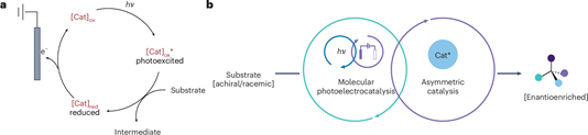 Abstract: In the quest for more efficient and sustainable asymmetric catalytic methods, synthetic organic chemistry has relentlessly explored innovative techniques. This Comment highlights an emerging topic — photoelectrochemical asymmetric catalysis (PEAC) — which fuses molecular photoelectrocatalysis with asymmetric catalysis.