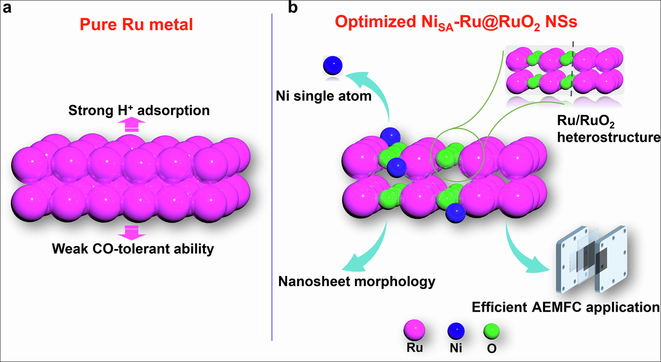 Title: A concurrently optimization of H and OH binding energies in atomically Ni anchored Ru/RuO2 nanosheet driving high CO-tolerant hydrogen oxidation catalysis