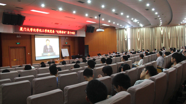 9月25日下午,化学化工学院“先锋讲坛”第十四讲在化学报告厅举办。厦门日报社新媒体中心主任赵琳以“亲切的关怀,巨大的鼓舞”为题,和大家交流了她学习习近平总书记在金砖厦门会晤期间的重要讲话精神和对厦门工作重要指示精神的体会。学院江云宝院长、林辉书记等党政班子成员、学院关工委负责人、师生代表200多人参加了报告会,报告会在翔安校区醇醚酯国家工程中心同步视频直播。报告会由学院党委李芬芬副书记主持。