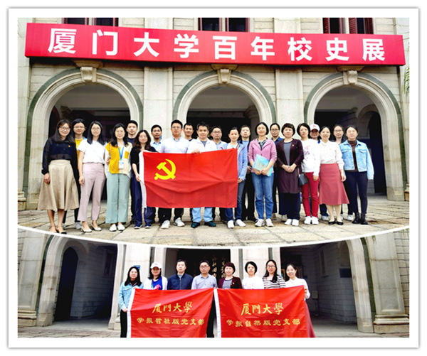 正值厦大人共襄百年盛举的校庆月,在新百年征程的起点,为扎实开展党史学习教育,深入学习习近平致厦门大学建校100周年贺信精神,围绕“弘扬嘉庚精神,奋进一流征程”主题,激励党员争当学史悟思的排头兵,从光辉历程中汲取奋进的力量,4月25日下午,化学化工学院国重室党支部、结构化学党支部、学报(自然版)党支部联合开展了“守正创新,共谱新篇”主题党日共建活动,组织党员参观了群贤楼陈嘉庚纪念馆、厦门大学百年校史展以及厦门大学化学学科百年文化展,并召开座谈会深入交流业务和党建工作经验。学报(哲社版)党支部党员共同参观并现场交流,化学化工学院党委副书记、院长谢兆雄教授应邀出席座谈会并讲授专题党课。