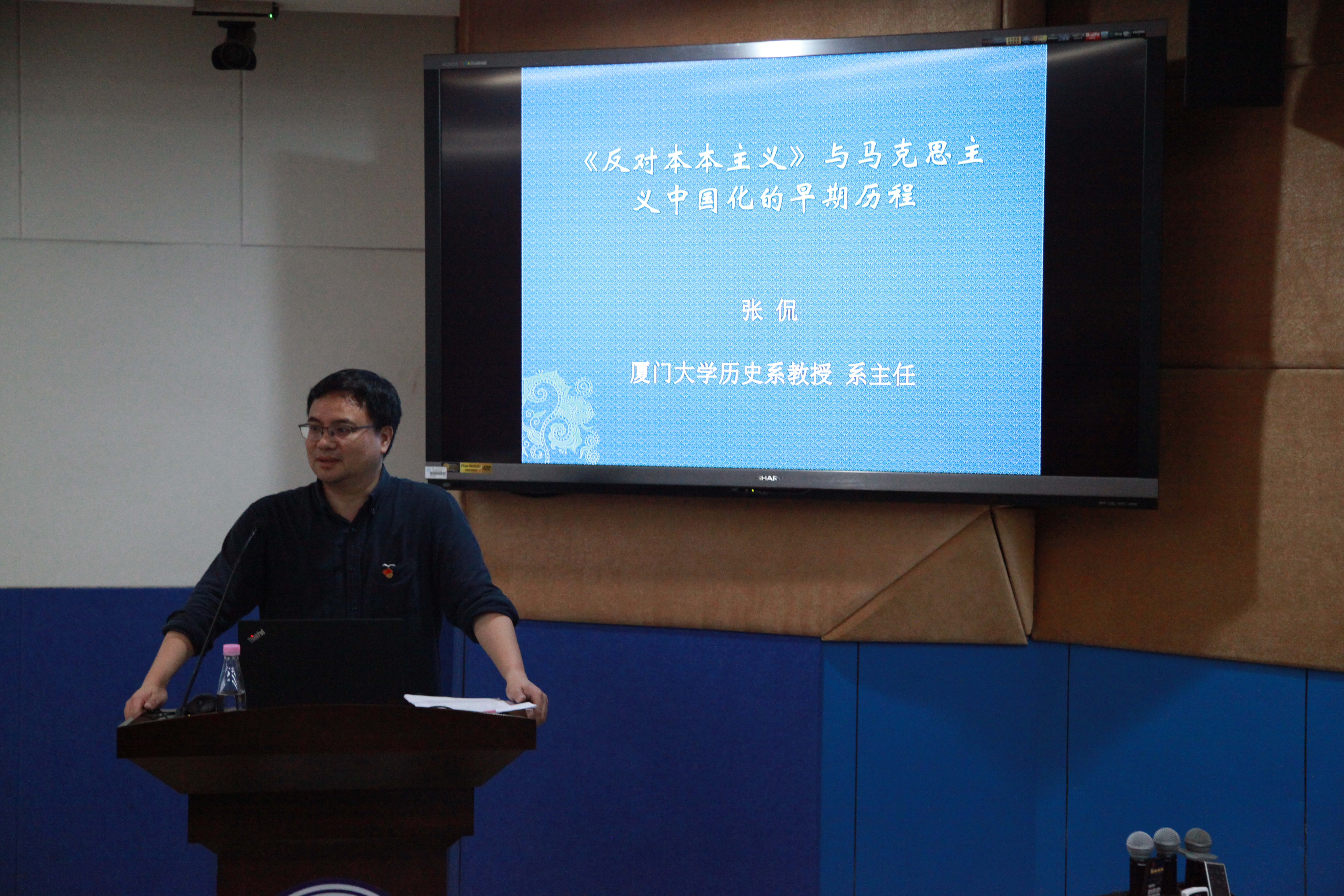 《反对本本主义》是毛泽东为反对当时红军中教条主义思想于1930年5月所写,原篇名为《调查工作》。该文从认识论的高度阐明调查研究的重要性,是中国共产党实事求是、群众路线、独立自主等基本思想的雏形。张侃教授详细介绍了马克思主义的中国化历程、《反对本本主义》诞生的历史背景、内容结构等内容,并着重讲解了《反对本本主义》文中“中国革命斗争的胜利要靠中国同志了解中国情况”的思想。