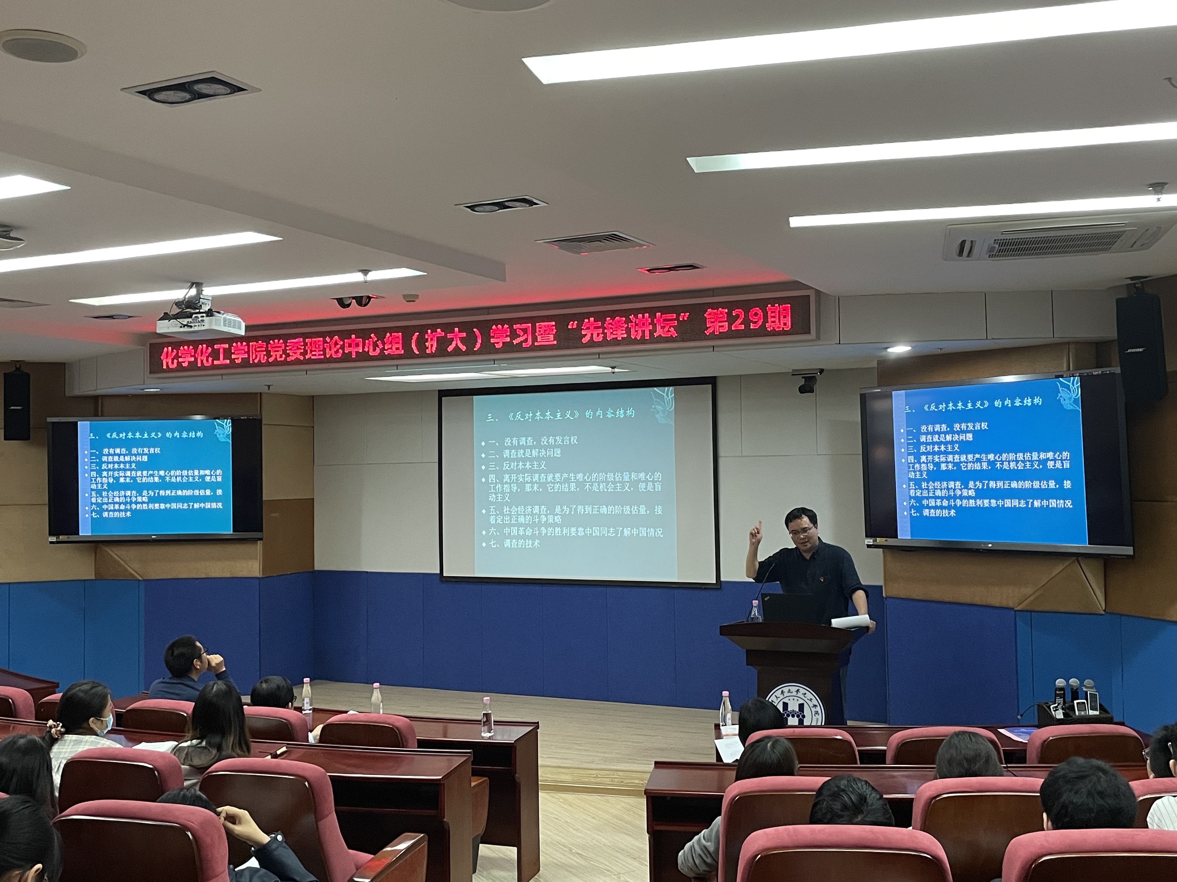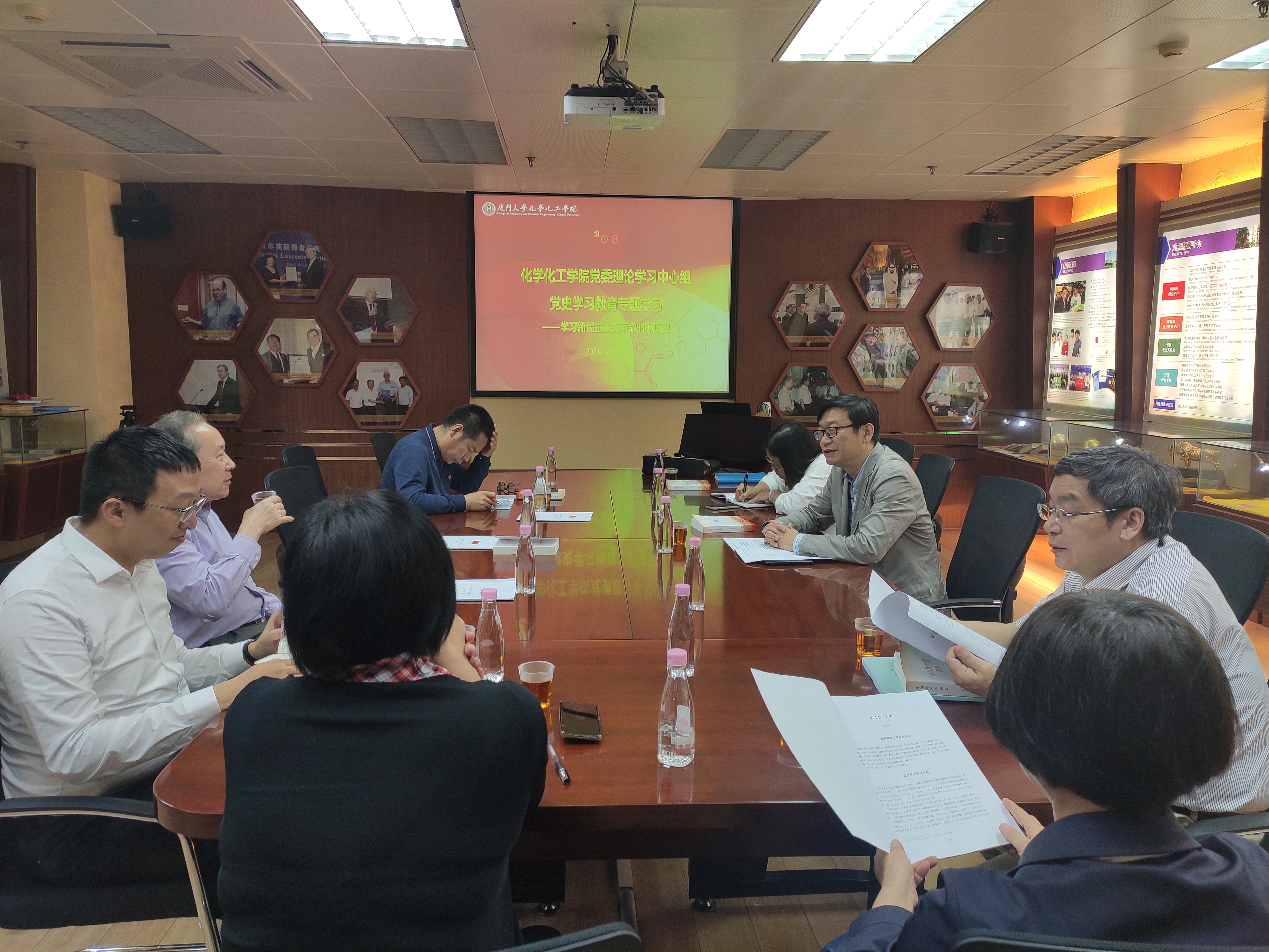 “先锋讲坛”结束后,学院党委理论学习中心组在卢嘉锡楼215会议室组织“新民主主义革命时期历史”专题集中学习,校基层党建工作联络员白锡能教授列席。中心组成员聚焦“反对本本主义,加强调查研究”,结合学院工作和学习体会,展开了热烈的学习研讨。