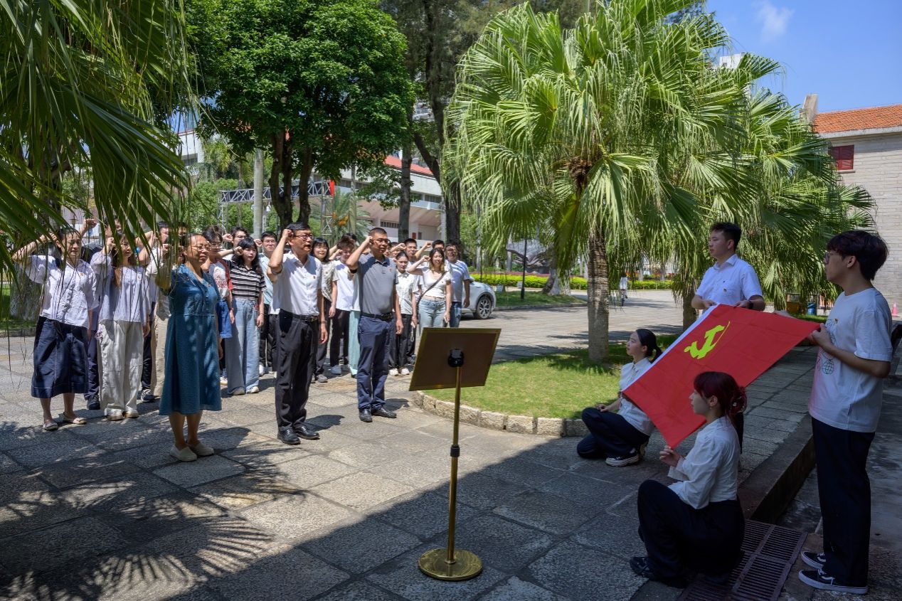 在中国共产党成立104周年之际,为进一步提升党员党性修养,强化身份认同感和历史使命感,铭记光辉历史,传承红色基因,化学化工学院举办“弘扬伟大建党精神、凝聚强大奋进力量”系列活动。7月1日上午,学院党委组织新发展党员代表前往厦门大学革命史展览馆参观学习,重温入党誓词。学院党委书记宋毅,党委副书记聂鑫、杜超,党委组织员和全体辅导员参加活动。