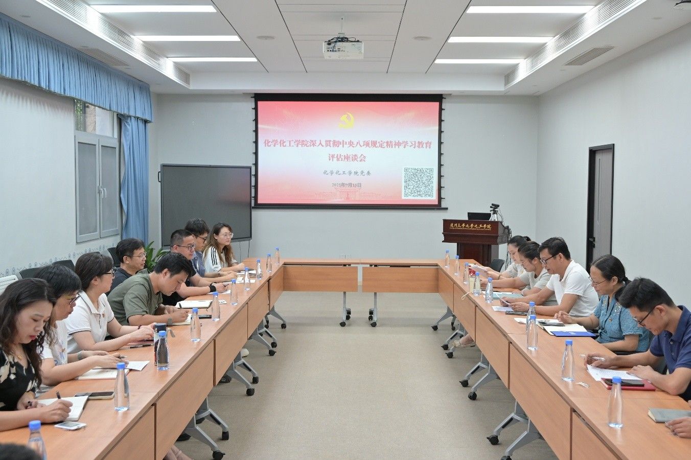 为进一步巩固拓展深入贯彻中央八项规定精神学习教育成果,推动作风建设常态化、长效化,9月18日、19日,化学化工学院分别召开深入贯彻中央八项规定精神学习教育评估座谈会和总结会。学院党委书记宋毅,党委副书记聂鑫、杜超,校基层党建工作联络员白锡能,学院党委委员,纪委委员,师生党支部书记,辅导员及党内外师生代表参加会议