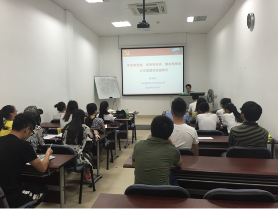 2014级硕士7班党支部在“两学一做”学习教育中,注重理论学习,坚持个人自学与集中学习相结合,引导党员做好自学,并按照“三会一课”制度,以党支部为单位集中学习。党支部创新学习形式,以组织参加院党委“先锋讲坛”、观看专题影片、开展时事热点沙龙、党支部成员考试考核等学习形式巩固专题学习效果。党支部倡导党员“立足本职、争做贡献”,支部党员在“如何作合格党员”,“发挥先锋模范作用”上,结合学科特色和科研学习实际,积极参加“昆贵所”科研考察等社会实践活动,充分体现学生党员的社会责任与担当意识。