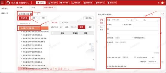 (2)同一名党员若存在未办结的转出流程,则不允许重复提交申请,必须结束或作废当前流程,才可发起下一条新的转移申请。