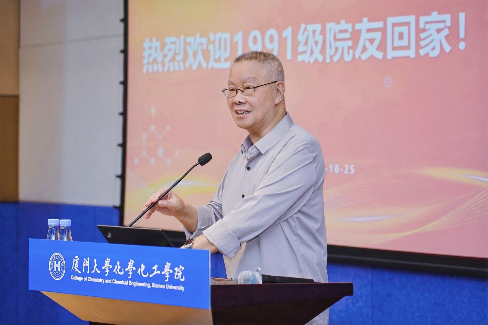 黄如彬看到校友们欢聚一堂,倍感欣慰。他表示,秋天是厦门一年之中最好的时节,大家的归来为秋日的校园增添了最亮丽的色彩。他回顾了学院从过去到现在的蓬勃发展历程,感慨学院今日的成就来之不易,凝聚了几代化院人的心血。他动情地说:“看到学院进步如此之大,我由衷地感到高兴。期待下一个十年,我们能在毕业40周年时再次相聚!”