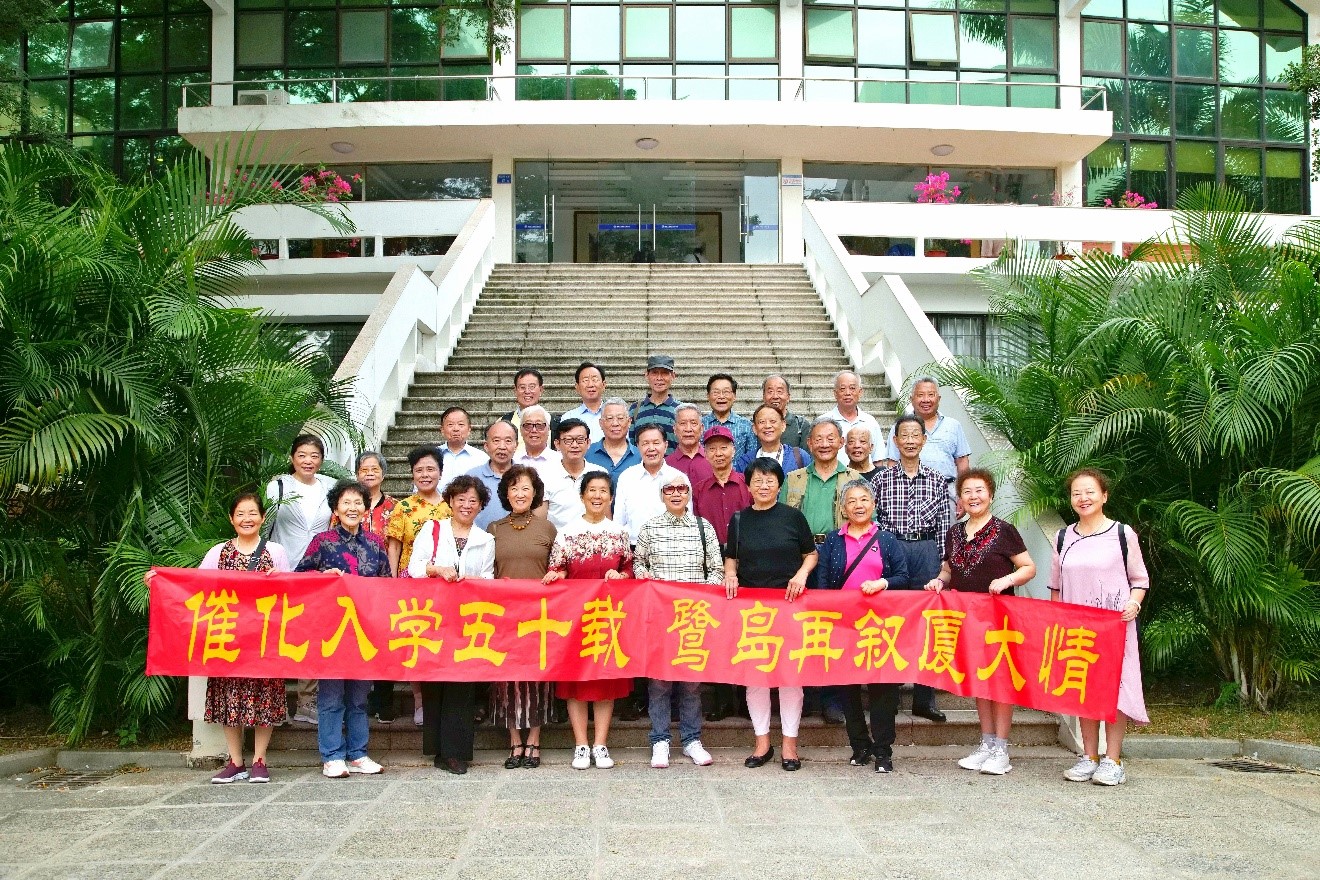 相识五十载,归厦忆少年。11月7日,1973级化学系催化专业校友一行20余人返回母校举行入学50年周年纪念活动。厦门大学原党委书记王豪杰,校关工委顾问、原化学系党总支书记黄如彬,学院党委书记宋毅、院长谢兆雄,以及退休教师祝以湘、戴深峻、于新生、林华水等出席座谈交流会。座谈会由1973级催化专业校友陈星原主持。