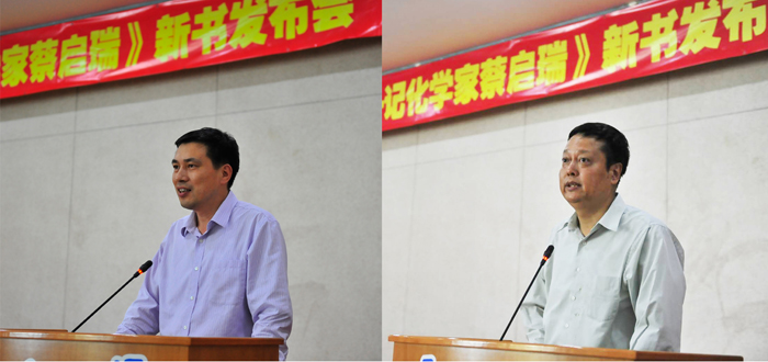 接着,谢兆雄院长在随后的发言中指出,蔡启瑞先生是爱国楷模、科学先锋,是最可敬的师长。他为厦大化学的发展壮大付出了无数的心血和汗水,他的科学精神和道德风范是厦门大学的一面旗帜,是厦大化学最宝贵的财富之一。他倡议全体师生都要认真阅读这本书,要以蔡先生为学习榜样,奋勇创新、开拓进取,让先生的精神品质在师生中一代代传承下去。
