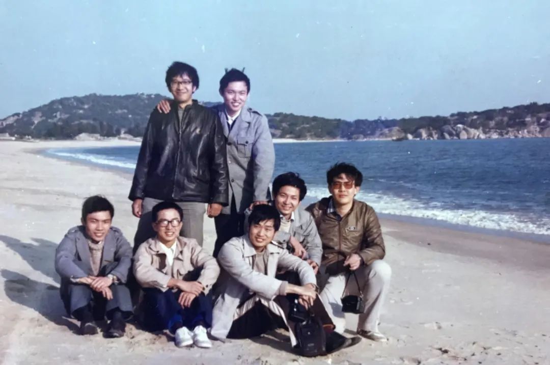 胡云行(前排左一)与蔡启瑞院士指导的其他博士研究生在福建东山岛海边