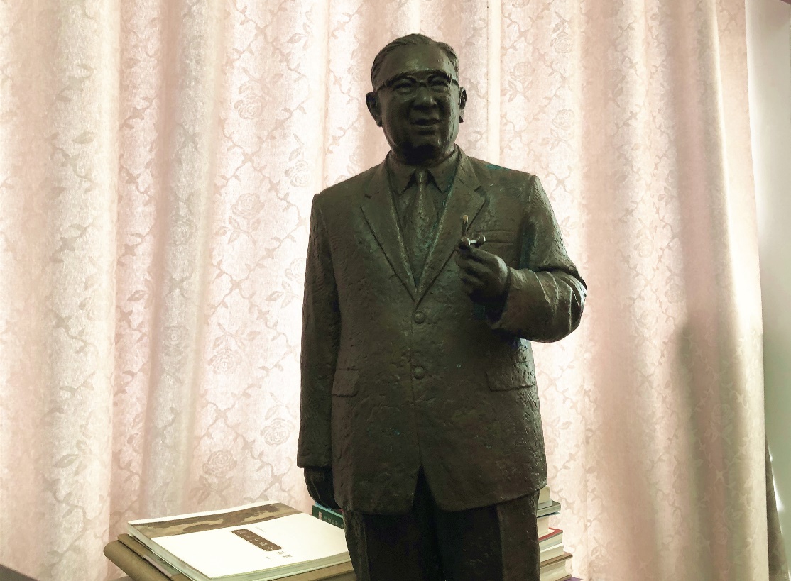 吴新涛办公桌上摆放的卢嘉锡先生雕像