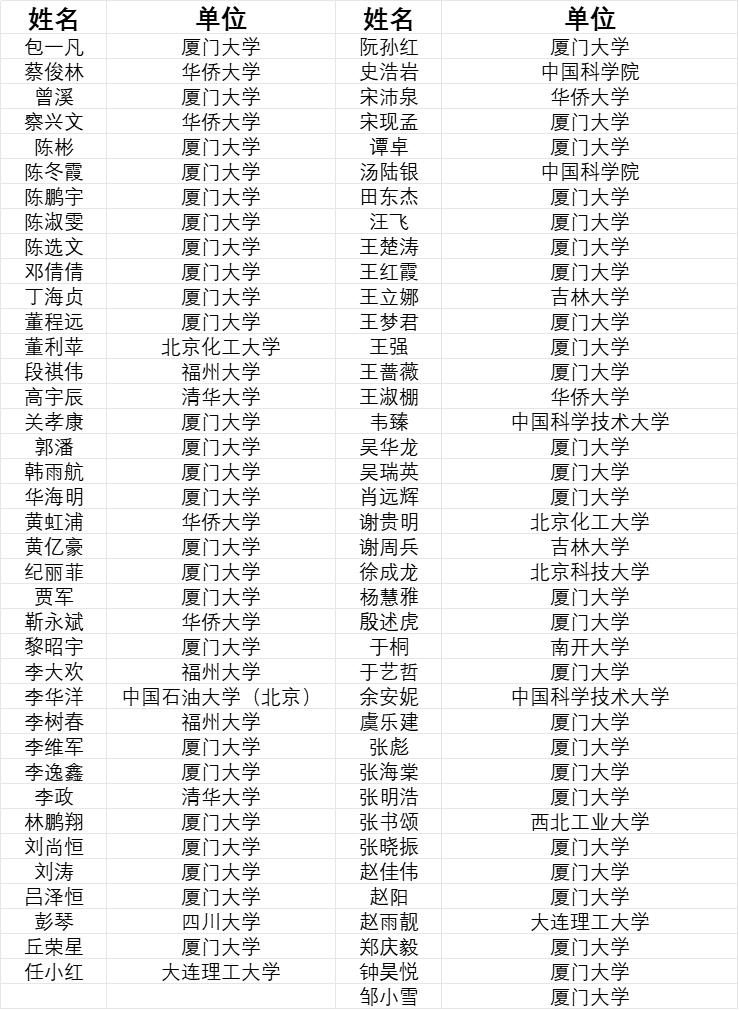 (入选名单按姓名首字母排序)
