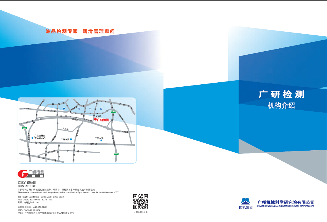 “广研检测”是广州机械科学研究院油品检测及设备润滑集成服务的技术品牌,“gti”是广州机械科学研究院检测研究所(gmeri testing institute)的英文缩写。