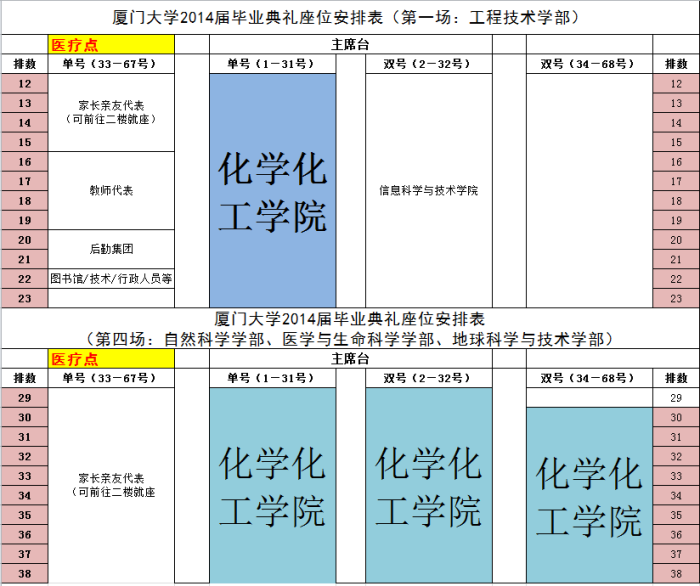 附件2:2014届毕业典礼座位安排表(第四场自然科学学部)