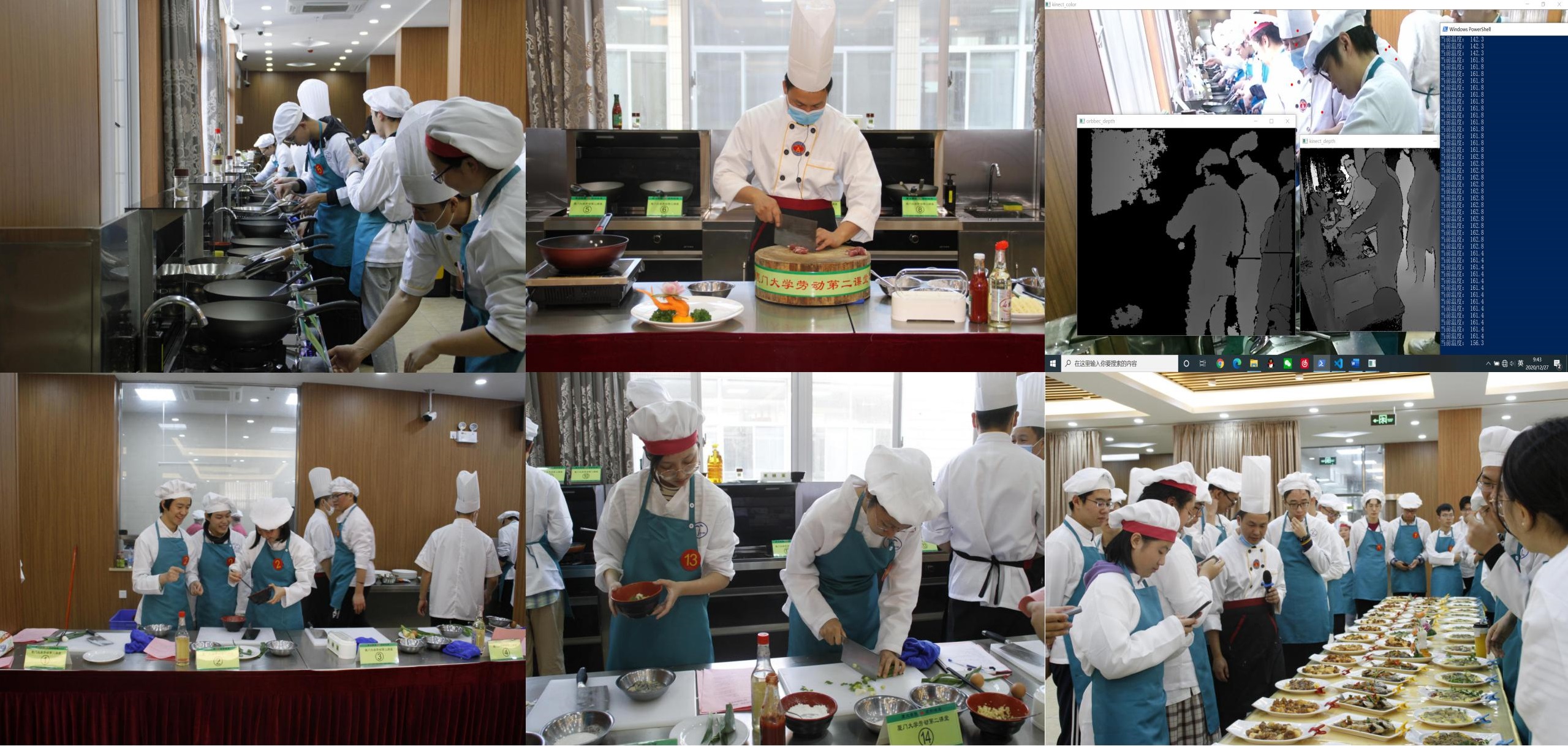 随后,三位厨师代表现场教学,向同学们演示了本次活动三道经典闽菜(厦门糖醋肉、酱油水黄翅鱼、厦门海蛎煎)的做法。同学们在认真观摩后,摩拳擦掌,分组进行了实际操练。在厨师的指导及组员的相互配合下,大家或切菜、或调味、或记录,顺利完成了三道菜肴的制作。同时,本课堂引入多种数据采集设备,在中餐烹饪的定量化与标准化上做了初步的尝试。例如使用红外温度传感器实时监测并采集炒锅内温度数据;使用天平精准称量所用食材及调味品的质量;使用3D体感摄影机录制烹饪人员的动作细节,转换为图像数据并结合机器学习,研究烹饪人员的技术动作、烹调时间等对菜品的影响。最后,厨师们从色、香、形、味等角度对学生们的作品进行了详细的点评。活动在欢声笑语与四溢鲜香中结束。