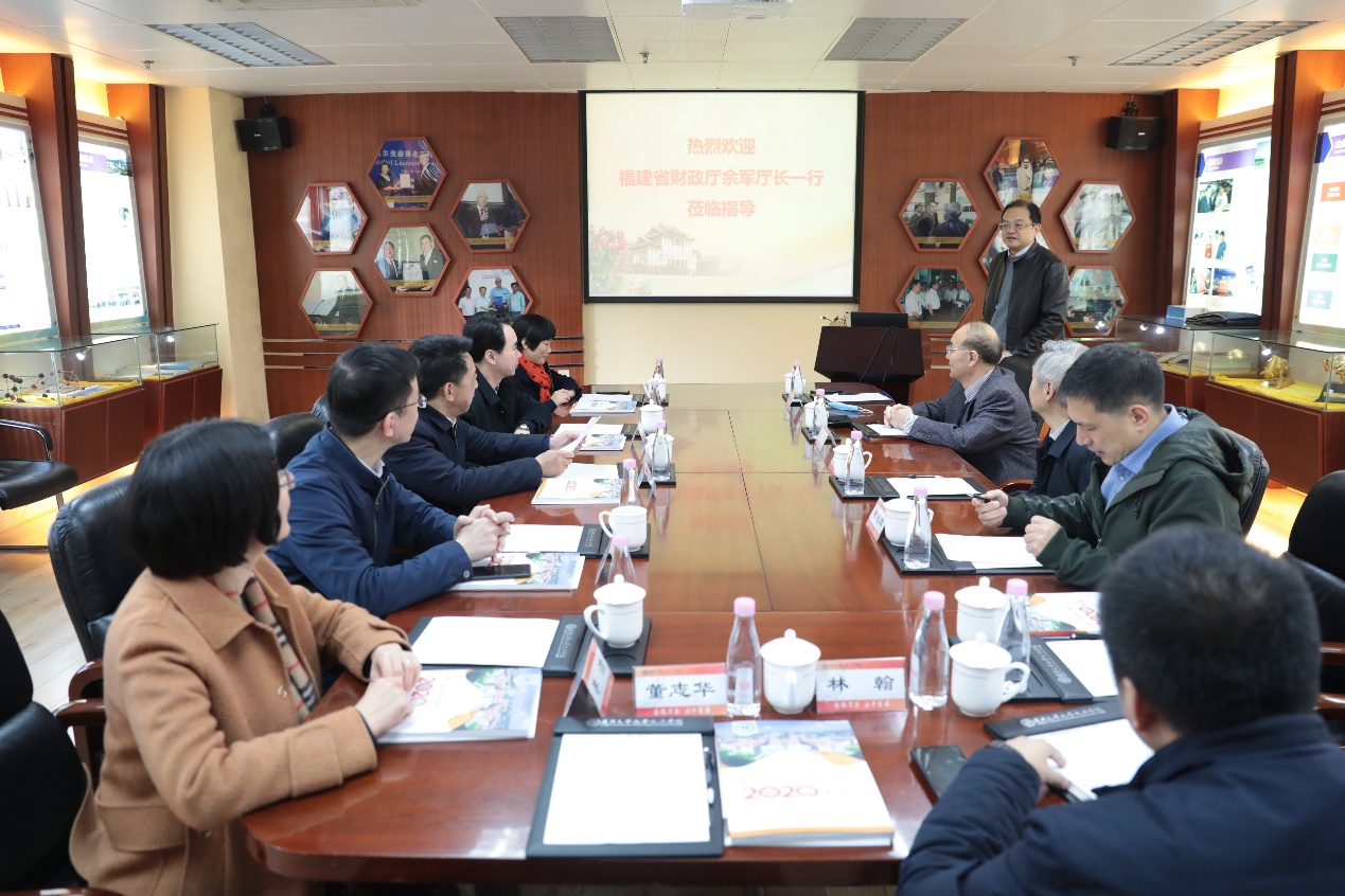 1月14日,福建省财政厅厅长余军一行莅临我院调研科研平台建设情况。中科院院士、嘉庚创新实验室主任田中群教授,院长谢兆雄教授,固体表面物理化学国家重点实验室主任王野教授,嘉庚创新实验室常务副主任周涵韬教授出席座谈会。会议由谢兆雄主持。