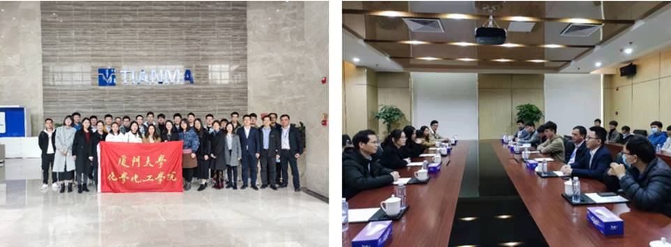 为增进学院博士生对产业应用的了解,助力基础研究与应用转化的精准对接,提升人才培养质量,探索院企合作的现实方案, 1月20日上午,学院2020级博士研究生1-3班24名同学组成的博士生实践队在班主任林清育老师、醇醚酯化工清洁生产国家工程实验室高级工程师郑进保老师的带领下,前往厦门天马微电子有限公司(以下简称天马微电子)开展调研学习。天马微电子董事会办公室经理徐文鹏,彩膜部经理徐双谊、专家杨进松、资深工程师兰维热情接待了实践队一行。