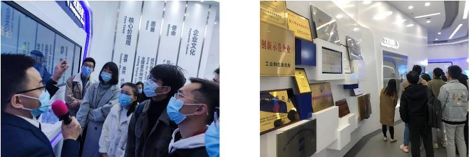 随后,大家分批进入生产车间展示长廊参观。占地数亩的超大无人洁净厂房与全自动化机器操作的生产线向同学们全方位展示了当代中国科技企业强大的生产动能以及科技的巨大作用。在工作人员的讲解中,同学们了解到关键核心与行业“卡脖子”技术突破对国内行业企业打破国外垄断、掌握发展命脉的重要意义,对科研工作有了更深入的体会。大家纷纷表示,将努力学习、提升自我,早日成长为国家科技创新事业的中坚力量,以高度的使命感和责任感,为国家的高质量发展添砖加瓦。