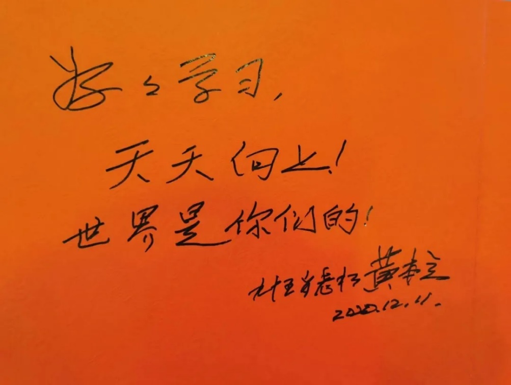 采访结束之际,吴海燕副校长和德育处黄祎主任亲手给黄本立院士送上了演武小学的吉祥物小文与小武,和蔼可亲的黄院士像孩子一样笑开了花。同时,黄院士也带来了两本《绚丽多彩的光谱人生——黄本立传》赠与学校。依依不舍的孩子们簇拥着黄院士,希望得到他的签名,黄院士亲切地给每个孩子的笔记本签上了名字,并为孩子留下了“好好学习,天天向上!世界是你们的!” 的美好期许。