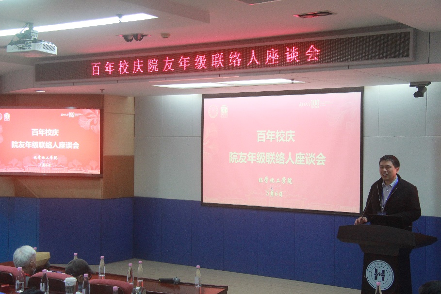 谢兆雄院长作为1983级院友,对各位学长学姐、学弟学妹的到来表示热烈的欢迎!对大家心系母院,支持母院的发展表示衷心的感谢!他分别从学院概况、师资队伍、人才培养和科学研究五个方面向各位院友汇报了学院的基本情况,带领大家一同回顾学院的建设历程,了解学院近些年的主要发展。他还向大家介绍了学院精心筹备的百年院庆系列活动和学校即将开放的百年校庆会务系统,希望各位联络人以此次庆典为契机,加强母院与院友的联络沟通,齐心协力、全力以赴为百年院庆贡献力量。