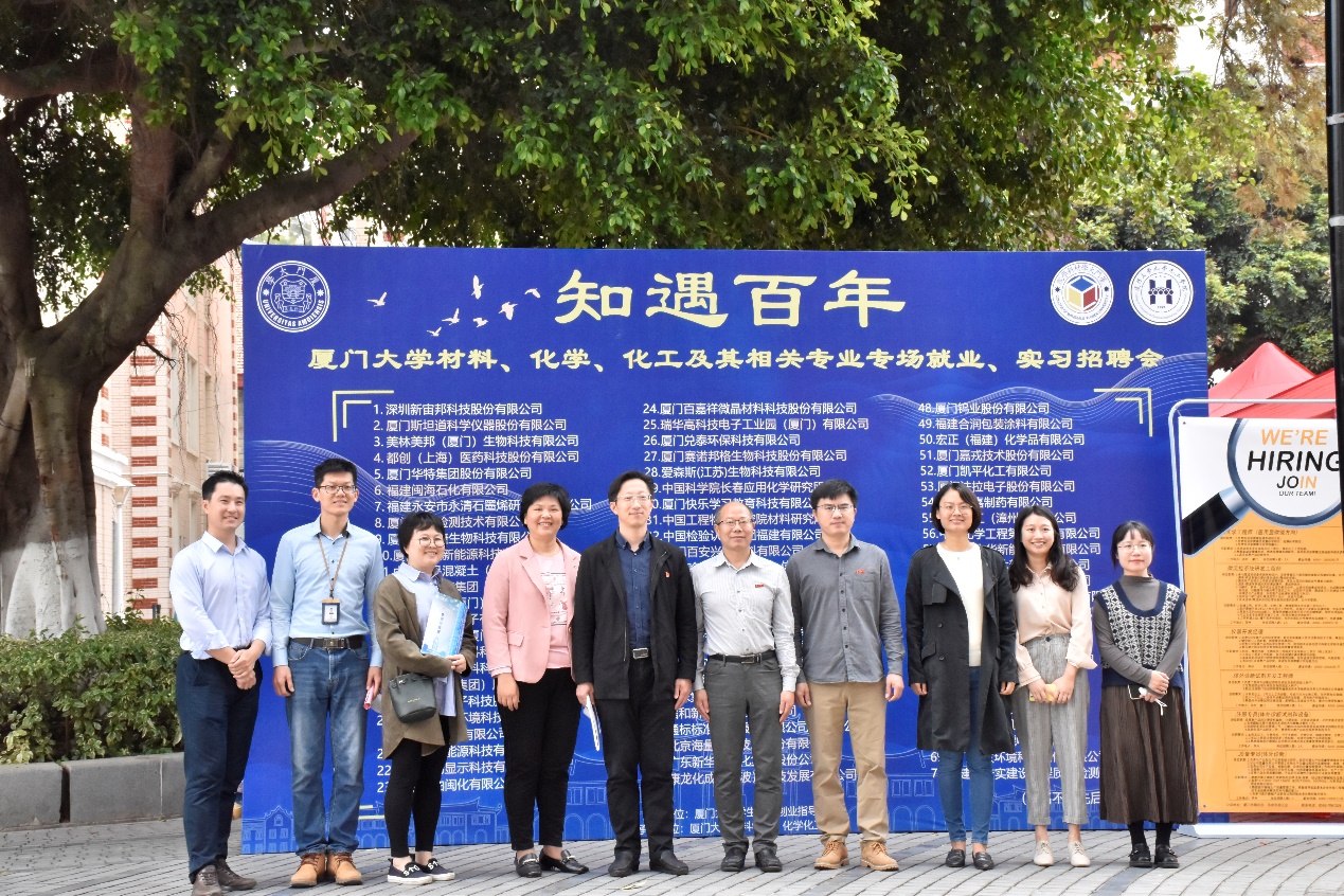 本次招聘会由厦门大学学生就业创业指导中心、化学化工学院和材料学院共同主办。招聘会于2020年底启动,经过前期向有人才需求的对口知名企业发出邀请以及学校和校友的广泛宣传,吸引了中国科学院长春应用化学研究所、中化泉州能源科技有限责任公司、中国化学工程第七建设有限公司和厦门钨业股份有限公司等专业对口的70家用人单位参与线下招聘,同时有15家企业线上参加,专业对口度高、行业覆盖面广、招聘岗位多样。