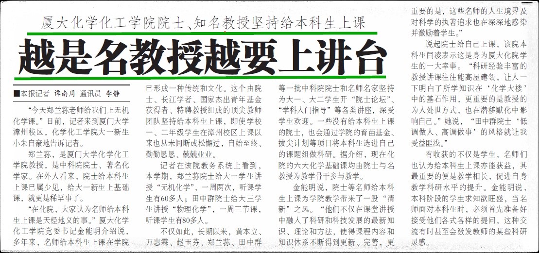 虽然获奖的老师们思想个性与教学风格不一,但却有着爱生如子、敬业乐教的共同品格,在厦门大学化学化工学院(原化学系)工作的时光也在各自心中占据着独一无二的位置。