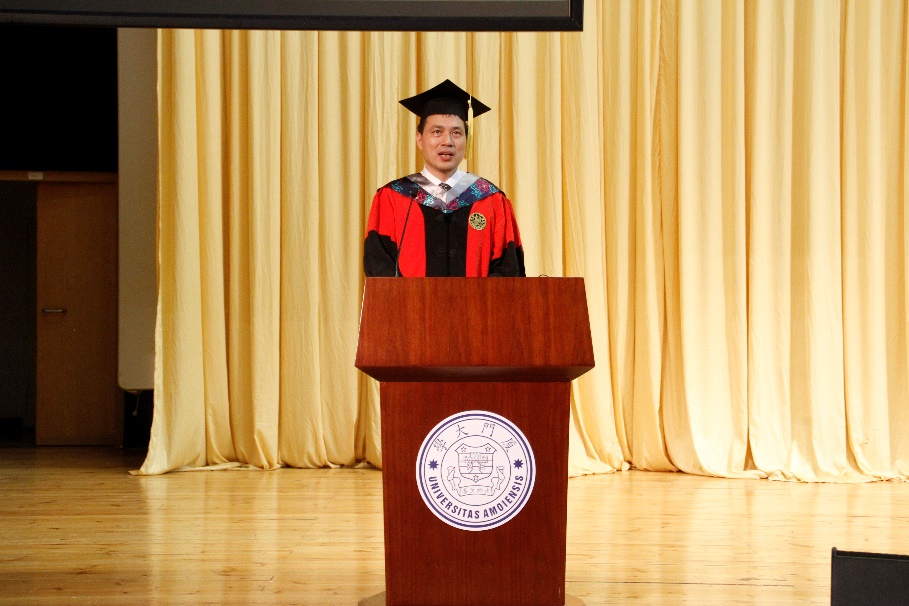 2017级本科生肖尧同学代表毕业生发言。他分享了得益于学院的教育、老师的引导和同学的帮助,自己从一个懵懂无知的少年在厦园中一步步成长为有责任有担当的毕业生。