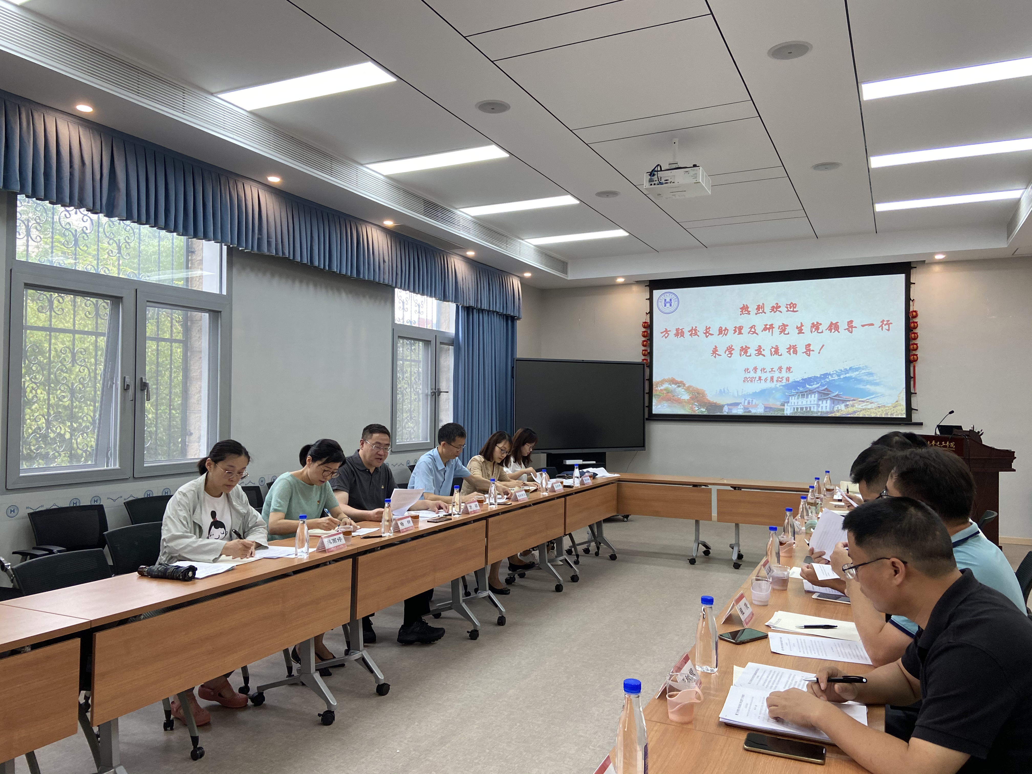 方颖表示,本次调研的主要目的为围绕研究生申请学位创新成果评价办法、学科评估以及“筑峰学科”建设计划等议题,深入了解学院发展述求,交流研究生工作方面的经验,进一步提升人才培养质量,共同探索完善一流学科建设方案,将化院这块学校的“金字招牌”做得更大更强。