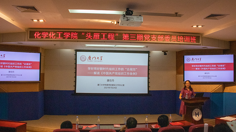 为进一步增强学院师生党支部委员的主责主业意识,提升履职尽责能力,切实做到学史明理、学史增信、学史崇德、学史力行,7月24日,化学化工学院党委举办 2021年“头雁工程”师生党支部委员培训班。学院党委委员,专兼职辅导员老师,各师生党支部委员等共计90余人参加培训。