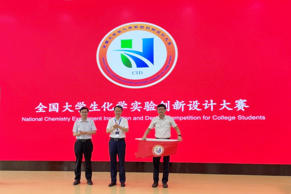 此外,总决赛闭幕式上还宣布第三届全国大学生化学实验创新设计大赛总决赛由厦门大学承办。教育部高等学校化学类专业教学指导委员会副主任、全国大学生化学实验创新设计竞赛委员会副主任、大连大学校长孟长功与我校化学化工学院党委书记宋毅交接了会旗。