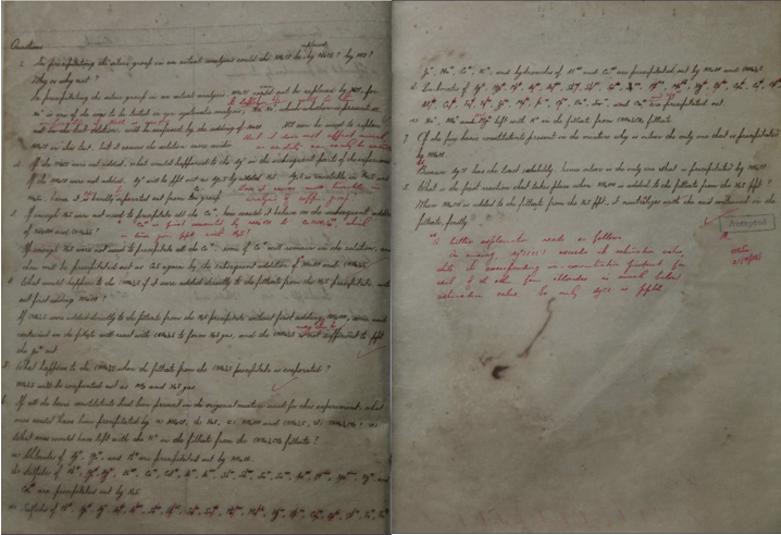 这两份“会说话”的实验报告书,是卢嘉锡在1935年和1937年批改的陈国珍的报告书,至今仍珍藏在厦门大学化学化工学院。翻看泛黄的书页,两个内容引人注目:陈国珍用蓝色的蘸水笔以英文写就的实验报告,字迹工整有致、一丝不苟;在蓝字中间,卢嘉锡书写的红色眉批,也是同样的清丽干净。
