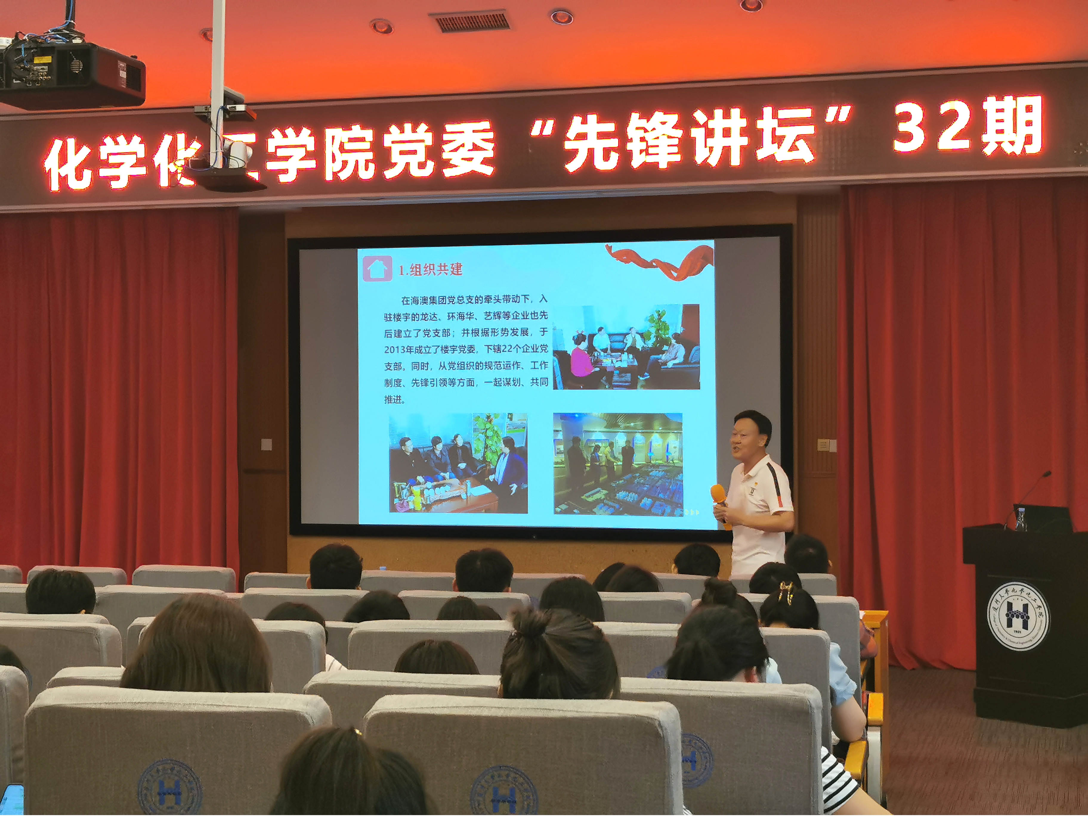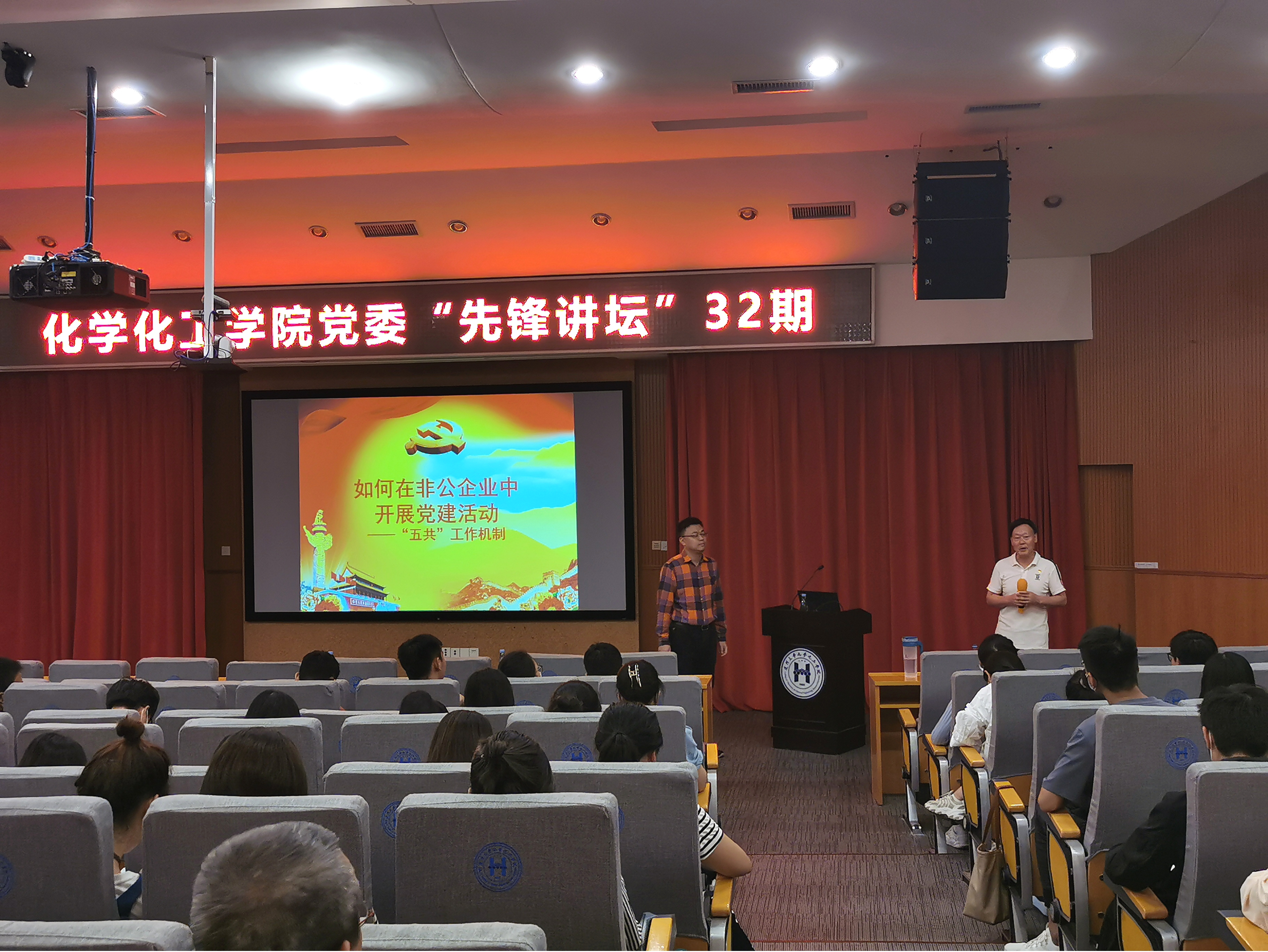 10月28日下午,学院电化学科学研究所教工党支部承办的化学化工学院第32期“先锋讲坛”在化学报告厅举办,活动邀请福建省优秀共产党员、福建省五一奖章获得者,厦门海澳集团有限公司董事、海沧商务大厦楼宇党委书记、海沧区总工会副主席陈勇作题为“如何在非公企业开展党建活动”的专题报告。学院党委委员、师生党支部委员等近200名党员参加了活动。电化学科学研究所教工党支部书记侯旭主持会议。