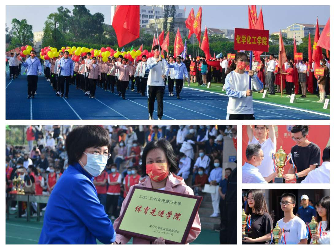 在校第56届学生田径运动会、第20届教职工运动会暨第30届老年人体育健身大会上,化学化工学院师生奋力拼搏,共获得教职工运动会团体总分第三名,研究生组团体总分第一名,本科生组团体总分第六名,学生运动会团体总分第三名的喜人成绩,并获得开幕式健身气功八段锦一等奖,以及体育道德风尚奖和体育先进学院荣誉称号。