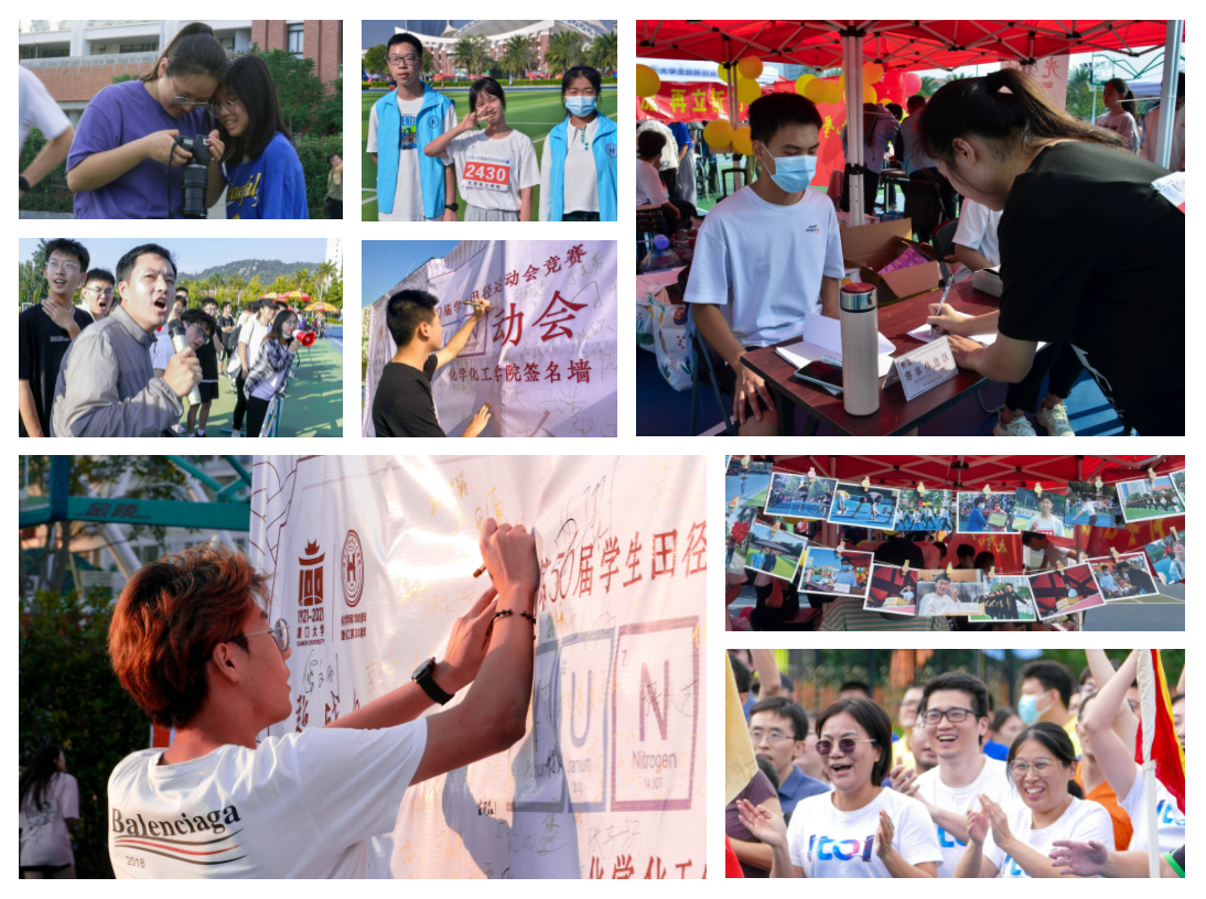 运动会取得喜人成绩,离不开每一位化院人的辛勤付出,学院学生工作组和工会的每一位老师,都亲临一线、坚守岗位,研究生会和学生会各部门分工协作、密切配合,从赛前组织动员、指导训练、物资储备,到比赛中加油助威、一对一保障,再到赛后宣传报道,所有人都在自己的岗位上默默耕耘,辛勤奉献。大本营的工作人员还为参赛师生准备了一个签名墙和风采展示墙,让每一个热情参与的化院人,都能留下他们最美好的回忆。