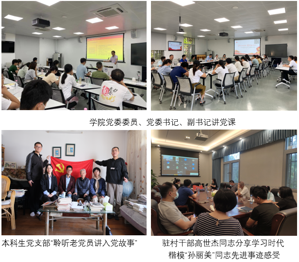 学院党委书记、党委副书记,院长、副院长,党委委员等带头讲授党史主题党课。与此同时,组织发动16位教工党支部书记熟读精读细读全党开展党史学习教育的鲜活教材——《中国共产党简史》,以党的历史发展进程为顺序、以各个时期的典型事例为线索,接力讲述《中国共产党简史》共10章70节的内容。通过集中学习、引学导读的方式,带领学院师生全景式、沉浸式地回顾100年来中国共产党带领人民进行革命、建设、改革的光辉岁月,重温党为实现国家富强、民族振兴、人民幸福和人类文明进步事业做出的历史贡献,学习党和国家不断从胜利走向胜利的宝贵经验,领会党在不同时期锻造凝练出的伟大精神。