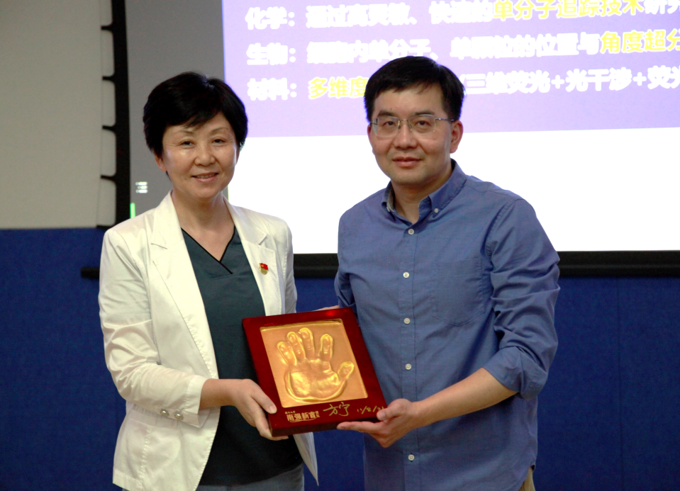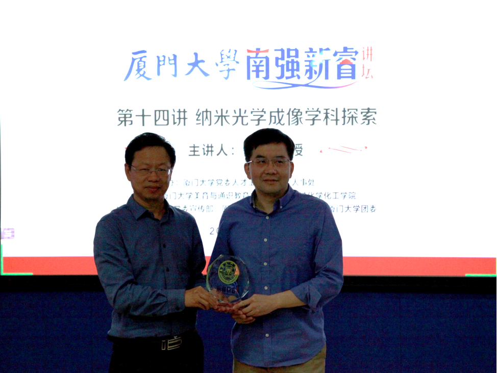 受学校领导委托,讲坛正式开始前,人事处处长兼党委人才工作办公室副主任李军教授为方宁颁发“南强新睿讲坛”纪念牌。