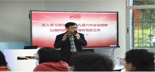 宋毅首先为大家逐一梳理《中共中央关于党的百年奋斗重大成就和历史经验的决议》的主要内容、重大创新和亮点,之后结合学院实际,围绕“用做科研的态度做好党的工作”主题与各位支部书记交流“如何学习贯彻十九届六中全会精神,全面提高党的建设质量”。他寄语学生党支部班子要积极发挥主观能动性,坚持团结协作,促进党建与学生学习科研深度融合;希望全体党支部委员以科学家的精神、以科研的态度、以科学的方法做好党的工作,将全会精神学习成效转化为学习工作成果,不断提升自我、超越自我,努力成为堪当民族复兴重任的时代新人。