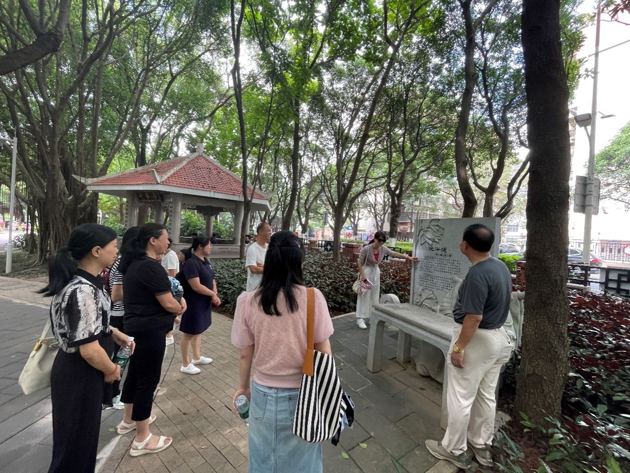 活动中,党员详细了解了文化苑的廉洁文化内涵。“万人曳舟”石雕呈现了池浴德因清正廉洁、一心为民而深受百姓爱戴的典故,让中心党员们更加坚定了以高尚师德引领学生成长的信念。“池半升断案”石像讲述了池浴德在浙江遂昌县任职时,公正断案且仅收取民众半升米作为路途之用的事迹,展现出其秉公执法、两袖清风的高尚品质,让党员们意识到在教育教学工作中同样要秉持公平公正的原则。驻足“百廉墙”,众多以不同字体呈现的“廉”字,搭配丰富的廉洁故事,进一步加深了党员们对廉洁理念的认识,提醒大家在教学、科研和管理工作中坚守廉洁底线。路过“警钟长鸣”景观,其庄重的警示作用,时刻告诫教师党员要保持清醒头脑,严守廉洁纪律。