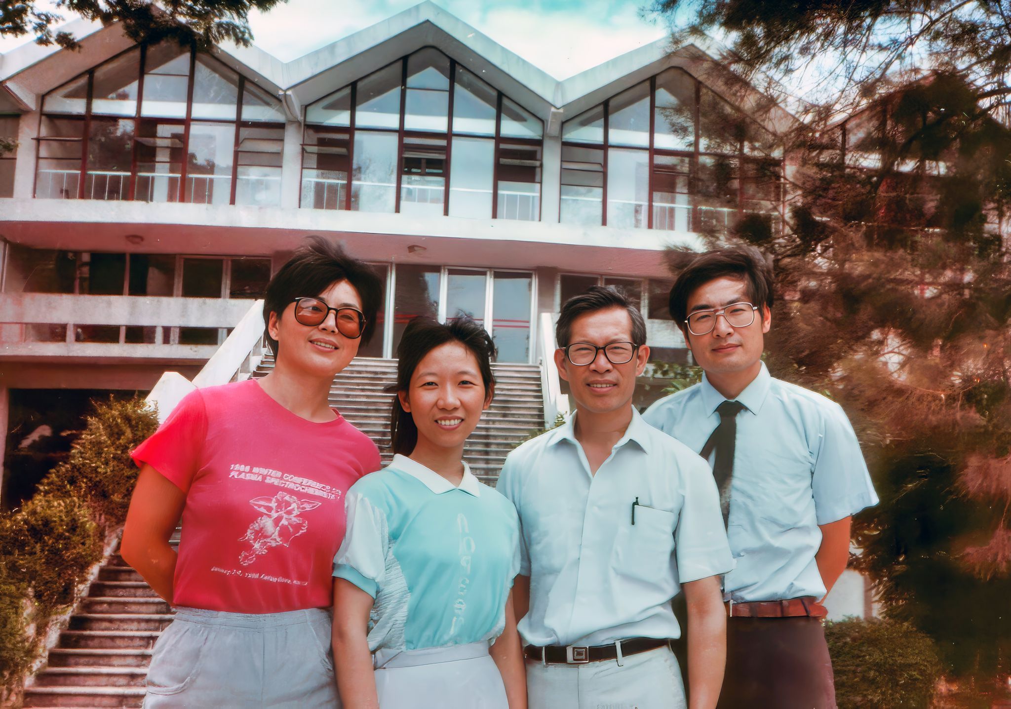 1993年,黄本立先生与学生在实验室讨论辉光放电质谱仪的研制方案