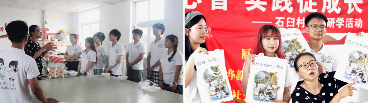 当天的压轴环节是一场别开生面的助农直播。借助石臼村第一书记王建珍的个人账号,实践队员化身“新农人”主播,现场品尝美味的五谷焦面,向观众热情展示。王建珍亲自演示焦面制作的流程,厦大文创产品作为“随单赠品”引发网友热抢。除了讲解产品,实践队员还在直播间分享了初来时当地人淳朴真诚、热情招待的情景,让网友在“云尝鲜”的同时,感受到乡村的自然与人文魅力。