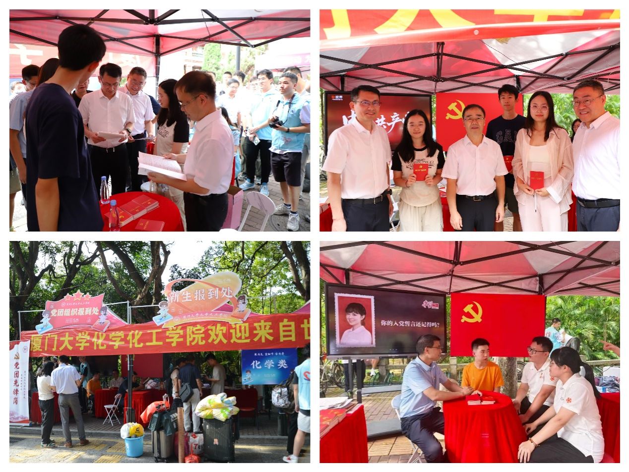 29日上午,厦门大学校长张宗益、党委副书记黄身勇、副校长方颖等莅临学院迎新点关心慰问师生,与递交入党申请书的新生代表亲切交谈,送上《中国共产党章程》,勉励他们认真学习专业知识,积极向党组织靠拢,争取早日成为一名合格的共产党员。