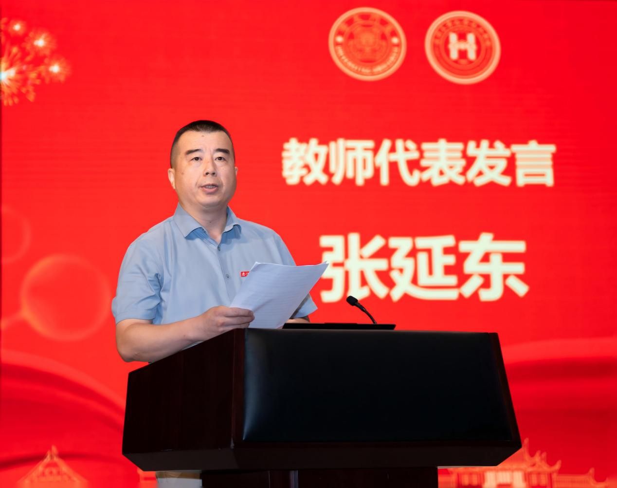 教师代表张延东教授时隔五年,再谈“自我”。他引用年初热映的《哪吒2》中震撼人心的呐喊“我命由我不由天!”表达化学家们凭借智慧与双手去设计反应、创造新物质、解决人类难题的精神内核。他表示,化学与化工都是一门将“不由天”的哲学付诸实践的学科。“由我”意味着从“背诵反应式”转向“设计反应式”;更意味着从“畏惧失败”转向“拥抱失败”;还意味着从“关注实验”转向“心怀天下”。实验室就是修炼“不由天”信念的最佳道场,希望同学们在合成实验屡试屡败时,记住蔡启瑞院士面对困难时的坚韧;在表征测试中精益求精时,传承黄本立院士对细节的执着;在团队协作中攻克难关时,践行卢嘉锡先生倡导的合作精神。
