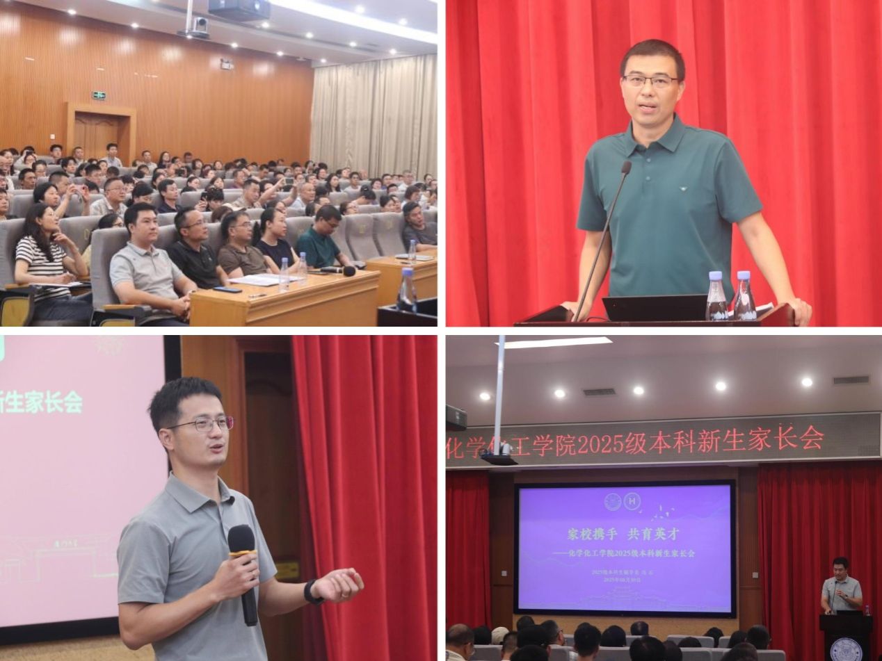 为深化家校联动机制,共促2025级本科新生平稳入学与全面成长,8月30日上午,化学化工学院于化学报告厅举办2025级本科新生家长见面会。学院党委副书记杜超、副院长陈嘉嘉、化学系副主任匡勤、化学生物学系副主任朱志、化学工程与生物工程系副主任黄加乐以及近300名新生家长参加本次会议。会议由院团委副书记、2025级本科生辅导员冯石主持。