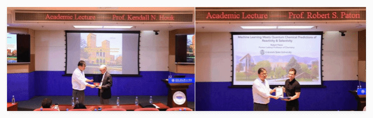 2025年10月29日,美国国家科学院院士、美国加州大学洛杉矶分校Kendall N. Houk教授和美国科罗拉多州立大学Robert S. Paton教授莅临厦门大学化学化工学院,分别为师生们带来了题为“Advances in Computational Explorations of Pericyclic Reactions and Pericyclases“的“南强学术讲座”和题为“Machine Learning Meets Quantum Chemical Predictions of Reactivity and Selectivity”的“卢嘉锡讲座”。报告由张弘教授主持,傅钢副院长出席并为两位教授颁发“南强学术讲座”和“卢嘉锡讲座”荣誉纪念牌。