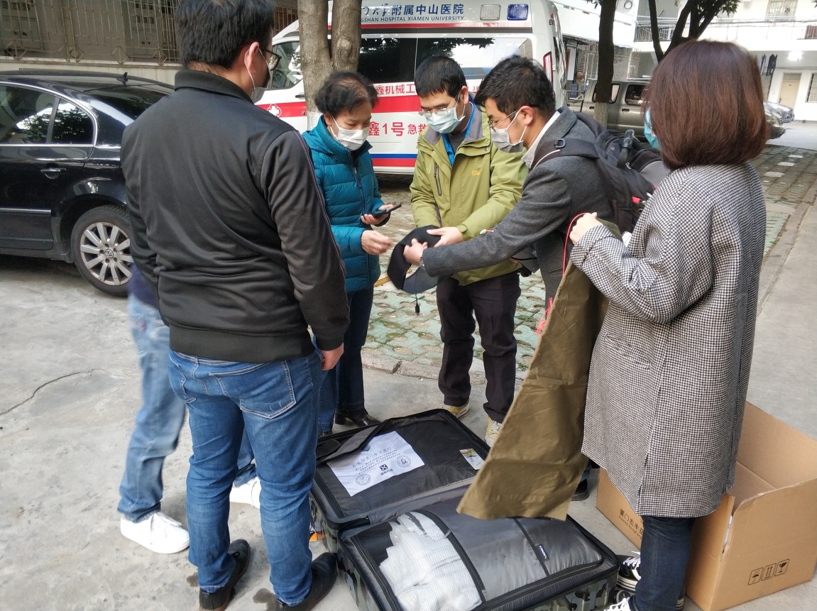 团队成员向医护人员讲解石墨烯远红外加热产品使用方法