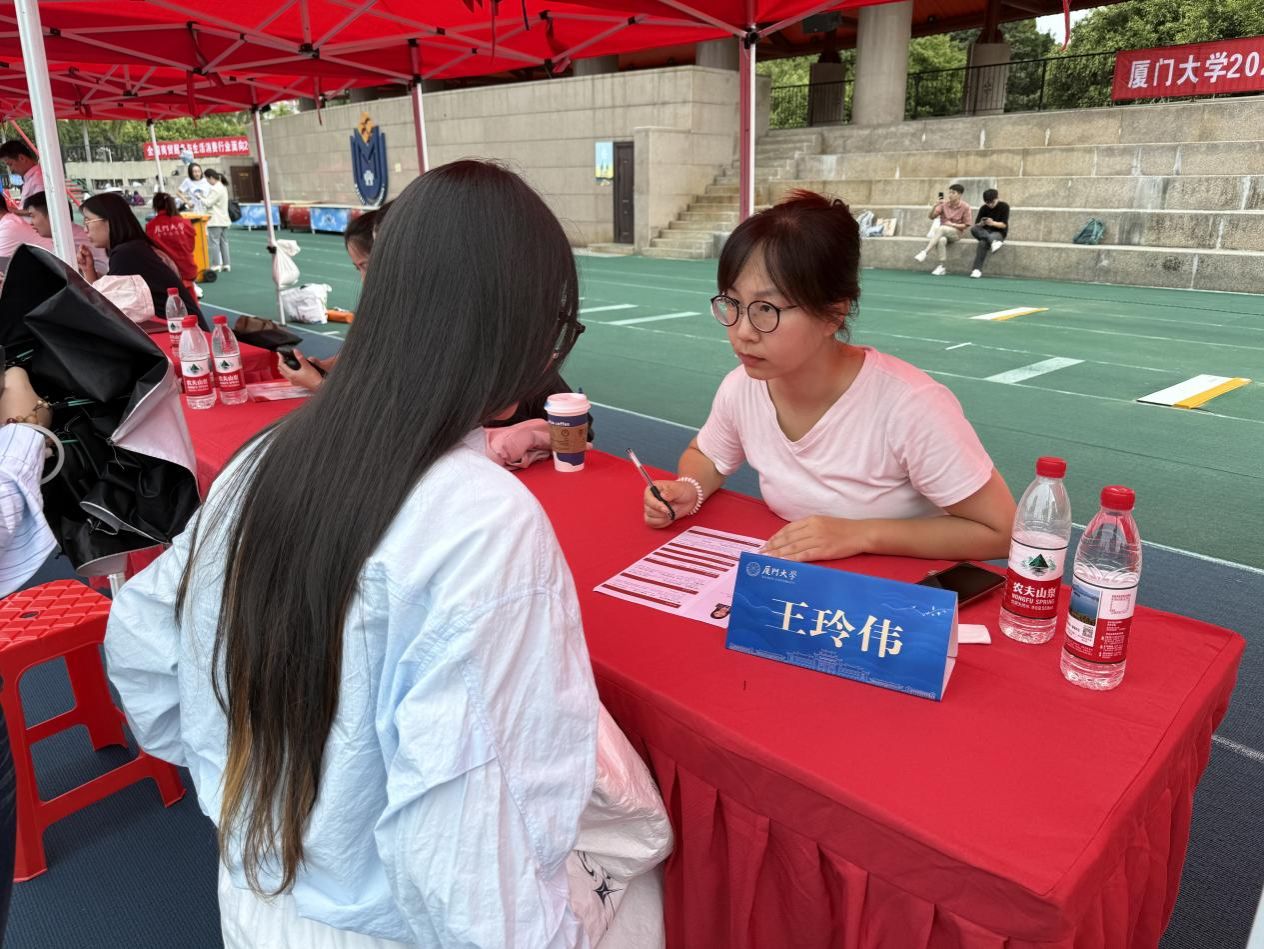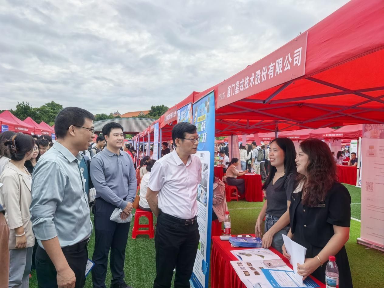 近日,厦门大学2026届毕业生秋季综合类大型双选会暨“凤凰花开,职为你来”2025年度校友企业专场招聘会在演武运动场顺利举办。学院党委书记宋毅带队深入招聘现场走访调研,与参会校友企业代表、求职毕业生亲切交流,详细了解企业招聘需求、岗位设置及毕业生求职意向、面试进展等情况。